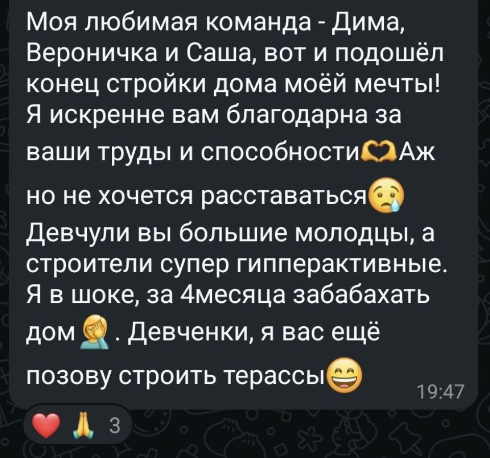 На срок стройки влияют разные факторы: площадь дома, сложность проекта, тип фундамента, вид внутренней отделки и т.д. Все рассчитывается ИНДИВИДУАЛЬНО.