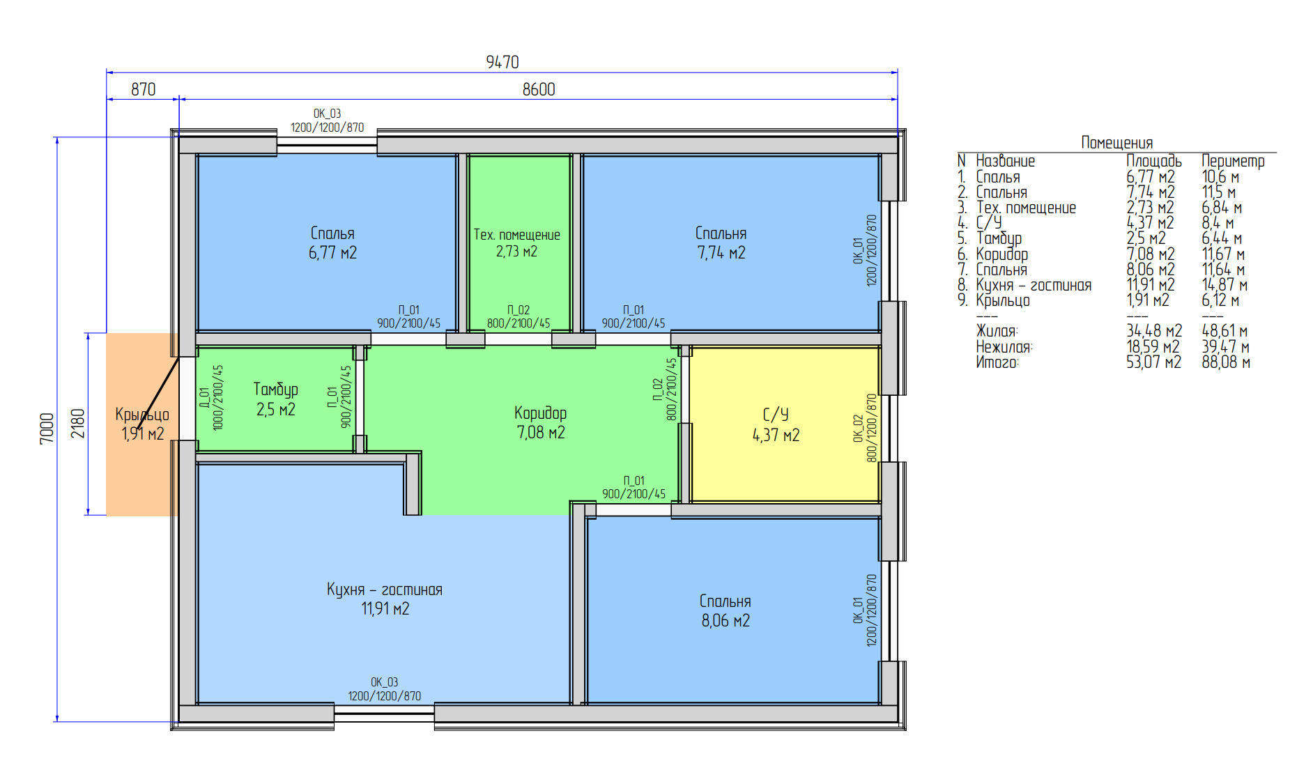 3 спальни