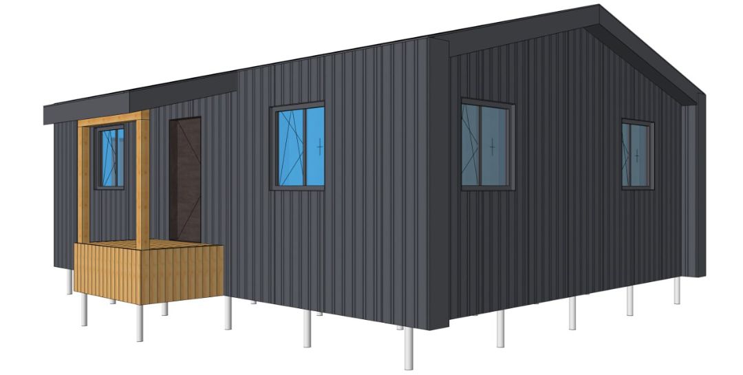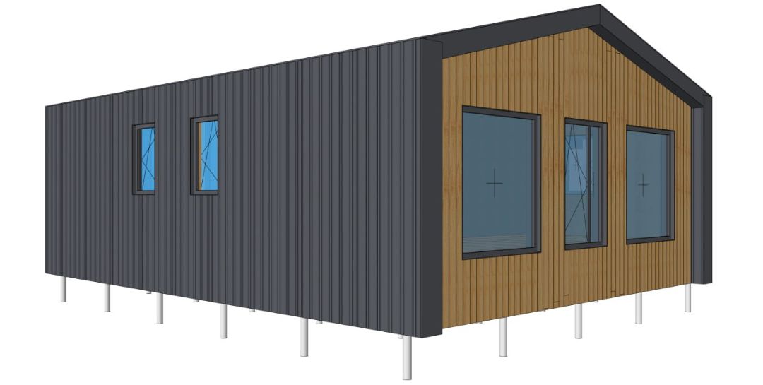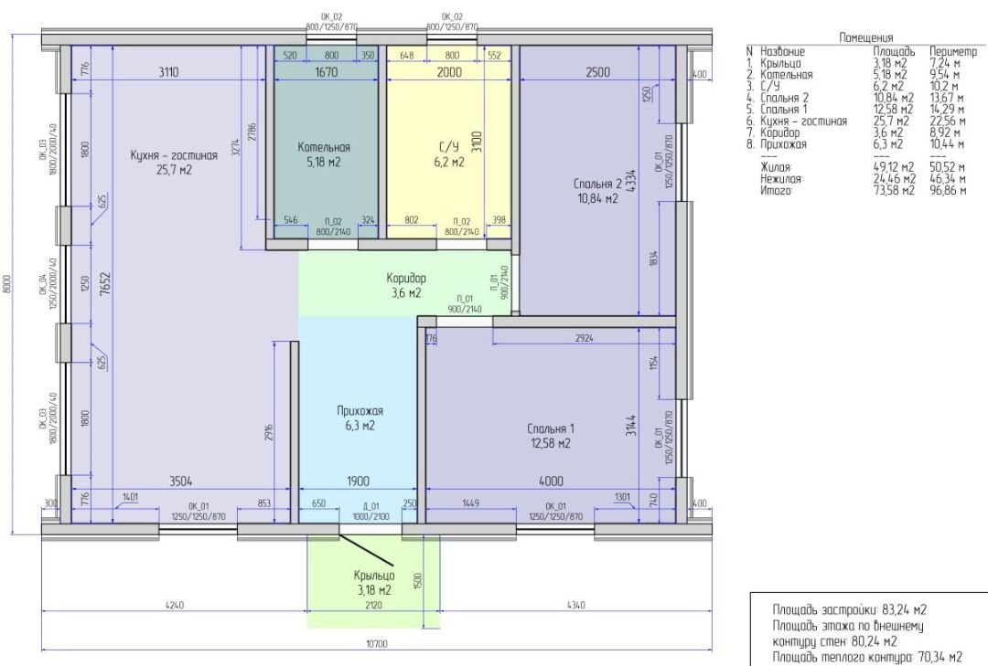 большая кухня - гостиная с большими окнами и выходом на будущую террасу